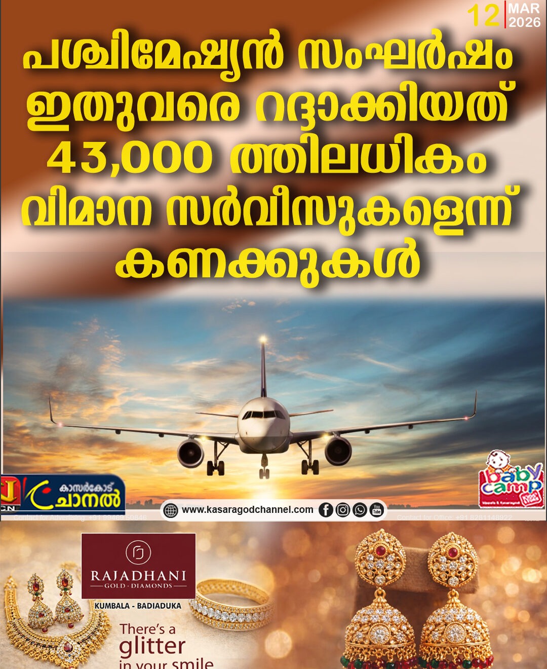 പശ്ചിമേഷ്യന് സംഘര്ഷം; ?ഇതുവരെ റദ്ദാക്കിയത് 43,000 ത്തിലധികം വിമാന സര്വീസുകളെന്ന് കണക്കുകള്