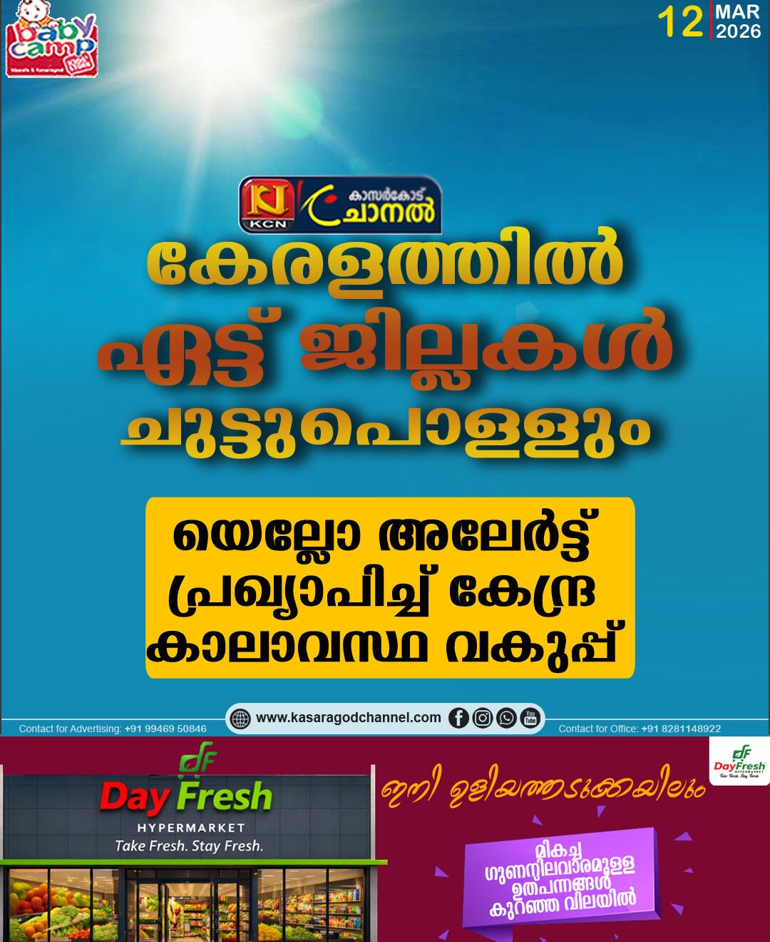 കേരളത്തില് ഏട്ട് ജില്ലകള് ചുട്ടുപൊള്ളും; യെല്ലോ അലേര്ട്ട് പ്രഖ്യാപിച്ച് കേന്ദ്ര കാലാവസ്ഥ വകുപ്പ്