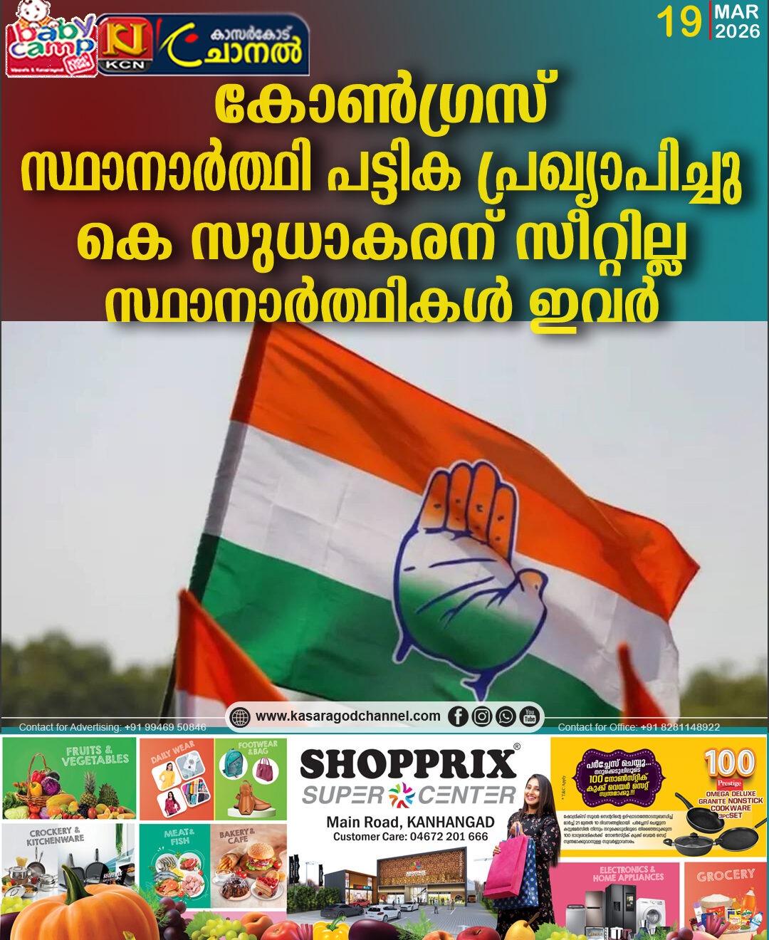കോണ്ഗ്രസ് സ്ഥാനാര്ത്ഥി പട്ടിക പ്രഖ്യാപിച്ചു; കെ സുധാകരന് സീറ്റില്ല, സ്ഥാനാര്ത്ഥികള് ഇവര്