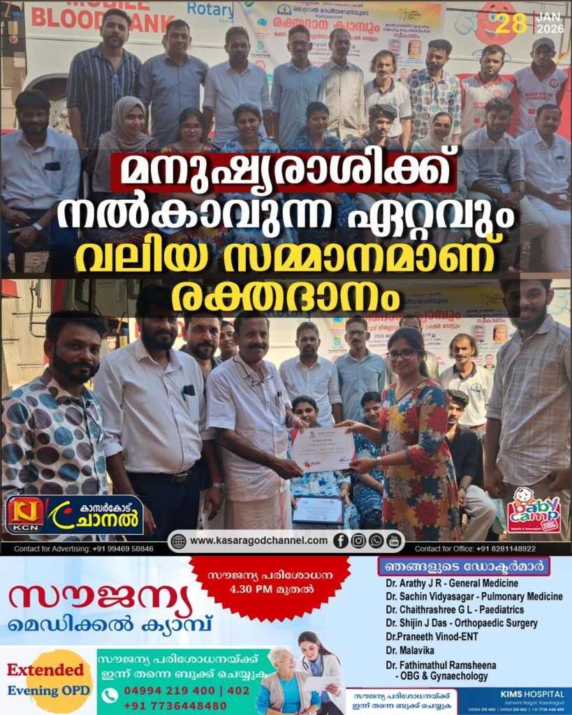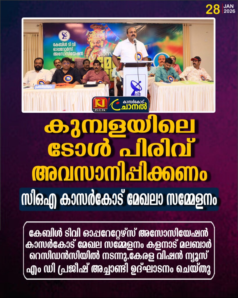 കേബിള് ടിവി ഓപ്പറേറ്റേഴ്സ് അസോസിയേഷന് കാസര്കോട് മേഖല സമ്മേളനം കളനാട് മലബാര് റെസിഡന്സിയില് നടന്നു.കേരള വിഷന് ന്യൂസ് എം പ്രജീഷ് അച്ചാണ്ടി ഉദ്ഘാടനം ചെയ്തു. ദേശീയപാത കുമ്പള […]
