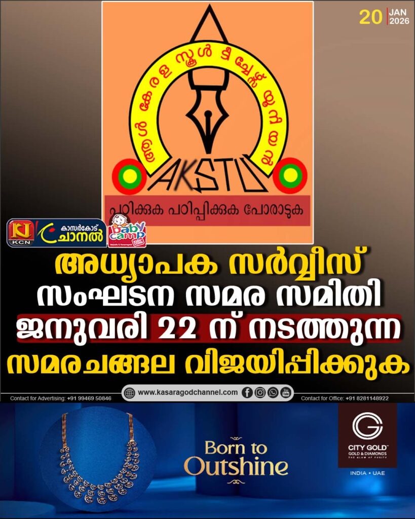 കാഞ്ഞങ്ങാട് :12-ാം ശമ്പള പരിഷ്കരണം അടിയന്തിരമായി നടപ്പിലാക്കുക, കെ.ഇ.ആര് പാര്ട്ട് 3 പ്രകാരമുള്ള സ്റ്റാറ്റിയൂട്ടറി പെന്ഷന് പുന:സ്ഥാപിക്കുക,ഡി എ കുടിശ്ശിക അനുവദിക്കുക, കേന്ദ്ര സര്ക്കാര് കേരളത്തോട് കാണിക്കുന്ന […]