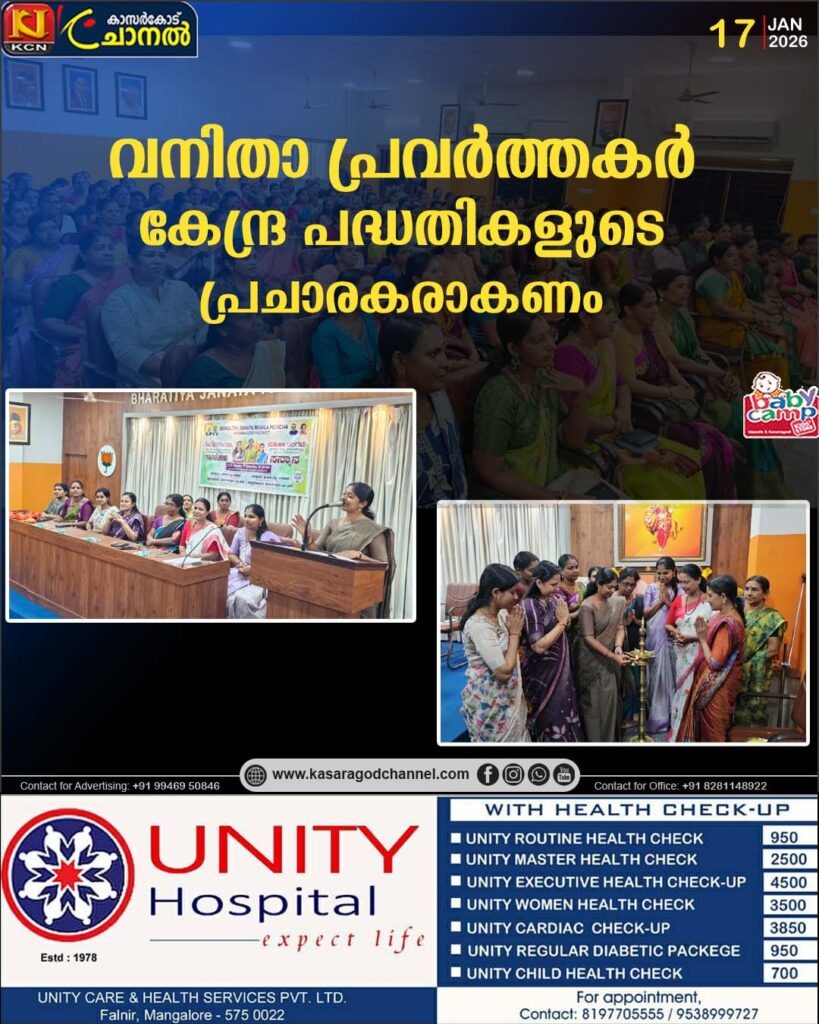 വനിതാ പ്രവര്ത്തകര് കേന്ദ്ര പദ്ധതികളുടെ പ്രചാരകരാകണം : നവ്യ ഹരിദാസ്