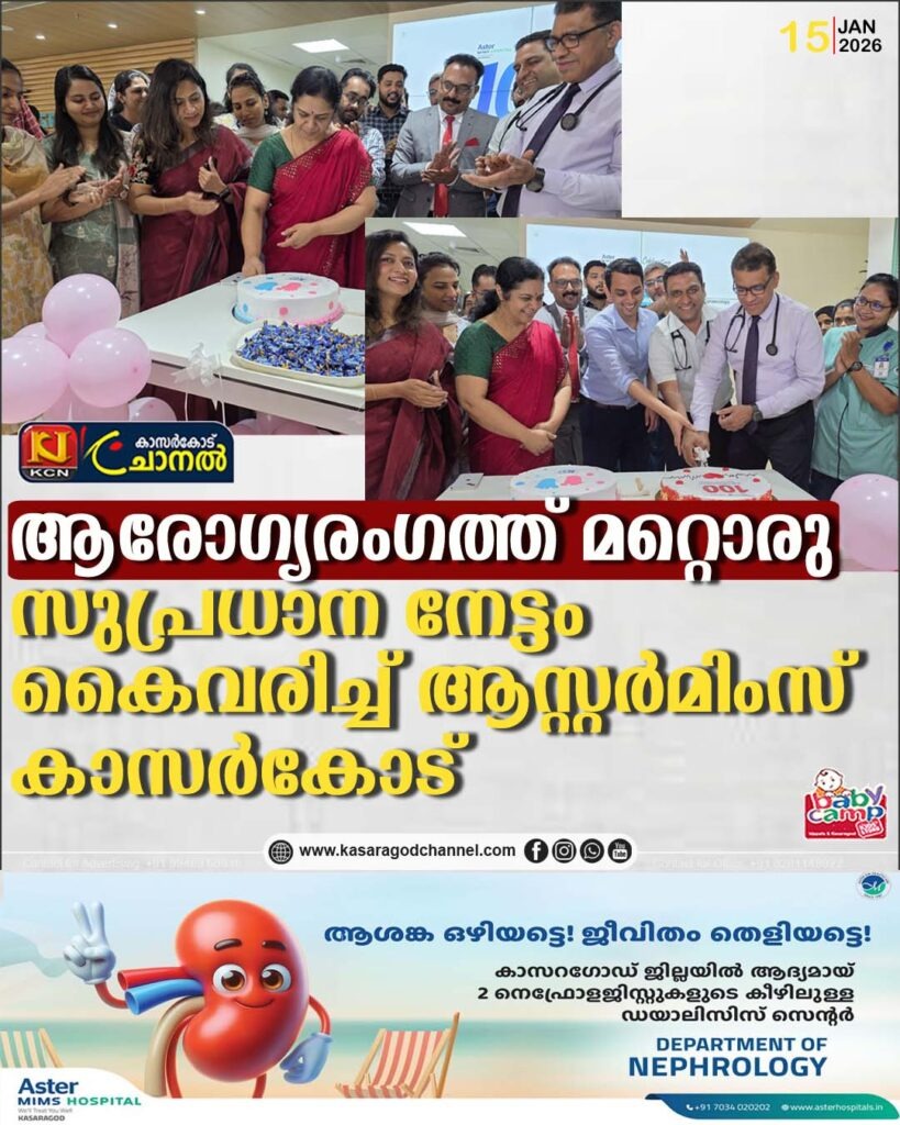 കാസര്ഗോഡ്:ആരോഗ്യരംഗത്ത് മറ്റൊരു സുപ്രധാന നേട്ടം കൈവരിച്ച് ആസ്റ്റര് മിംസ് കാസര്ഗോഡ്. ആസ്റ്റര് മിംസ് കാസറഗോഡ് തുടങ്ങി 3 മാസത്തിനുള്ളില് ആശുപത്രിയില് 100 സുരക്ഷിത പ്രസവങ്ങള്, (Safe Deliveries)