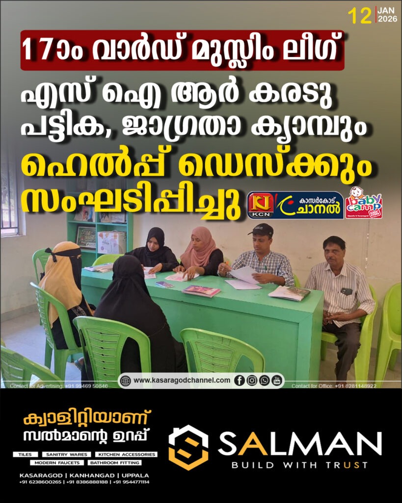 മൊഗ്രാല് പുത്തൂര് :17-ാം വാര്ഡ് മുസ്ലിം ലീഗ് കമ്മിറ്റിയുടെ നേതൃത്വത്തില് എസ് ഐ ആര് ജാഗ്രതാ സദസ്സും ഹെല്പ്പ് ഡെസ്ക്കും സംഘടിപ്പിച്ചു.17-ാം വാര്ഡിലെ ബൂത്തിലെഎസ് ഐ ആര്