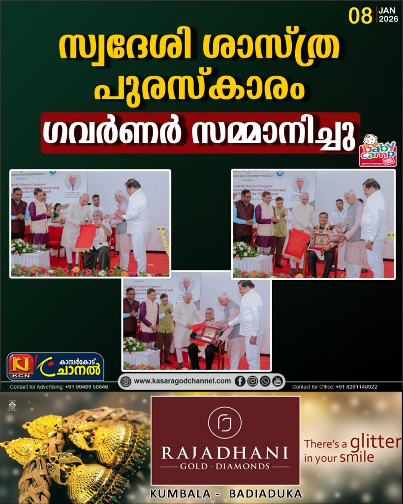 സ്വദേശി ശാസ്ത്ര പുരസ്കാരം ഗവര്ണര് സമ്മാനിച്ചു