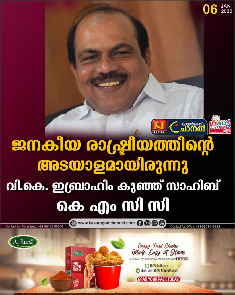 ജനകീയ രാഷ്ട്രീയത്തിന്റെ അടയാളമായിരുന്നു വി.കെ. ഇബ്രാഹിം കുഞ്ഞ് സാഹിബ്; കെ എം സി സി