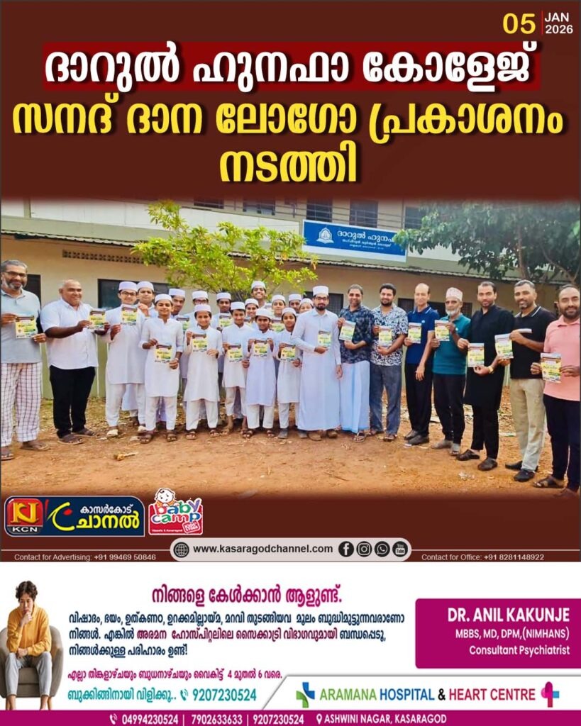 കാസര്ഗോഡ് നെല്ലിക്കുന്ന് മുഹിയുദ്ദീന് ജുമാഅത്ത് പള്ളിയുടെ കീഴിലുള്ള ദാറുല് ഹുനഫാ കോളേജ് സനദ് ദാന ചടങ്ങ് തങ്ങള് ഉപ്പാപ്പ ഉറൂസ് ആദ്യദിനത്തില് സമസ്ത പ്രസിഡന്റ് സയ്യിദ് ജിഫ്രി