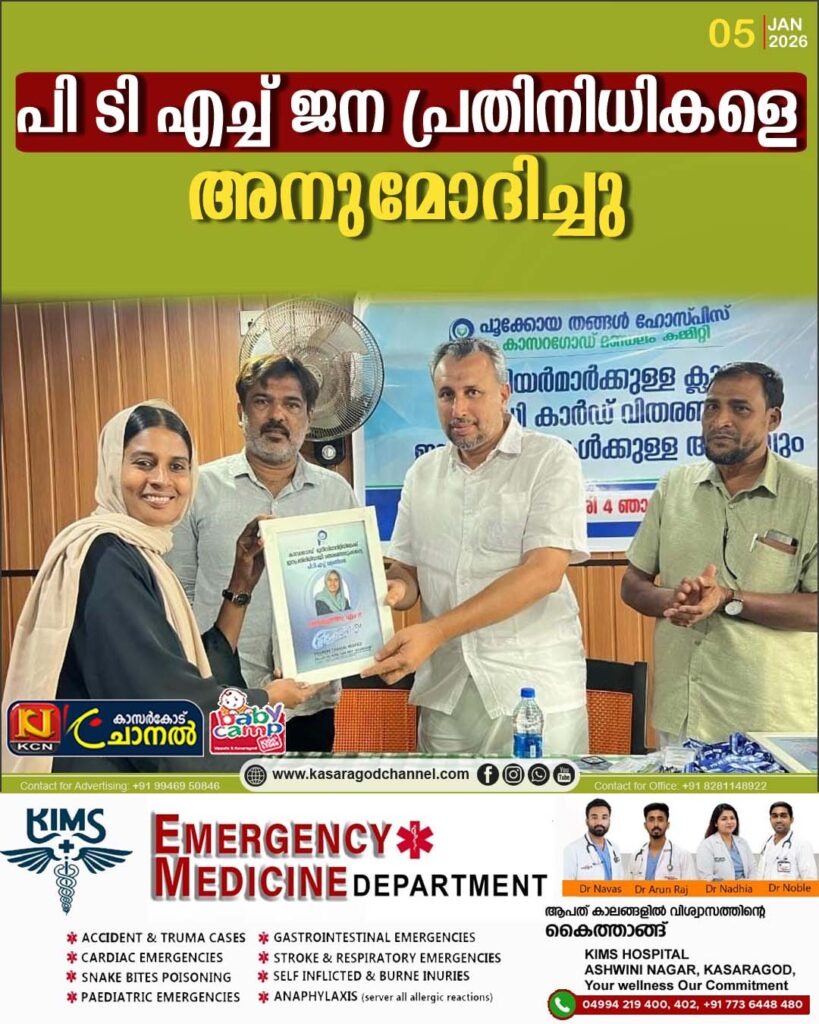 കാസറഗോഡ് : തദ്ദേശ തെരഞ്ഞെടുപ്പില് വിജയിച്ച പൂക്കോയ തങ്ങള് ഹോസ്പീസ് പാലിയേറ്റിവ് കെയര് വളണ്ടിയര്മാരെ പി ടി എച്ച് കാസറഗോഡ് മണ്ഡലം കമ്മിറ്റി അനുമോദിച്ചു,മുസ്ലിം ലീഗ് ജില്ലാ