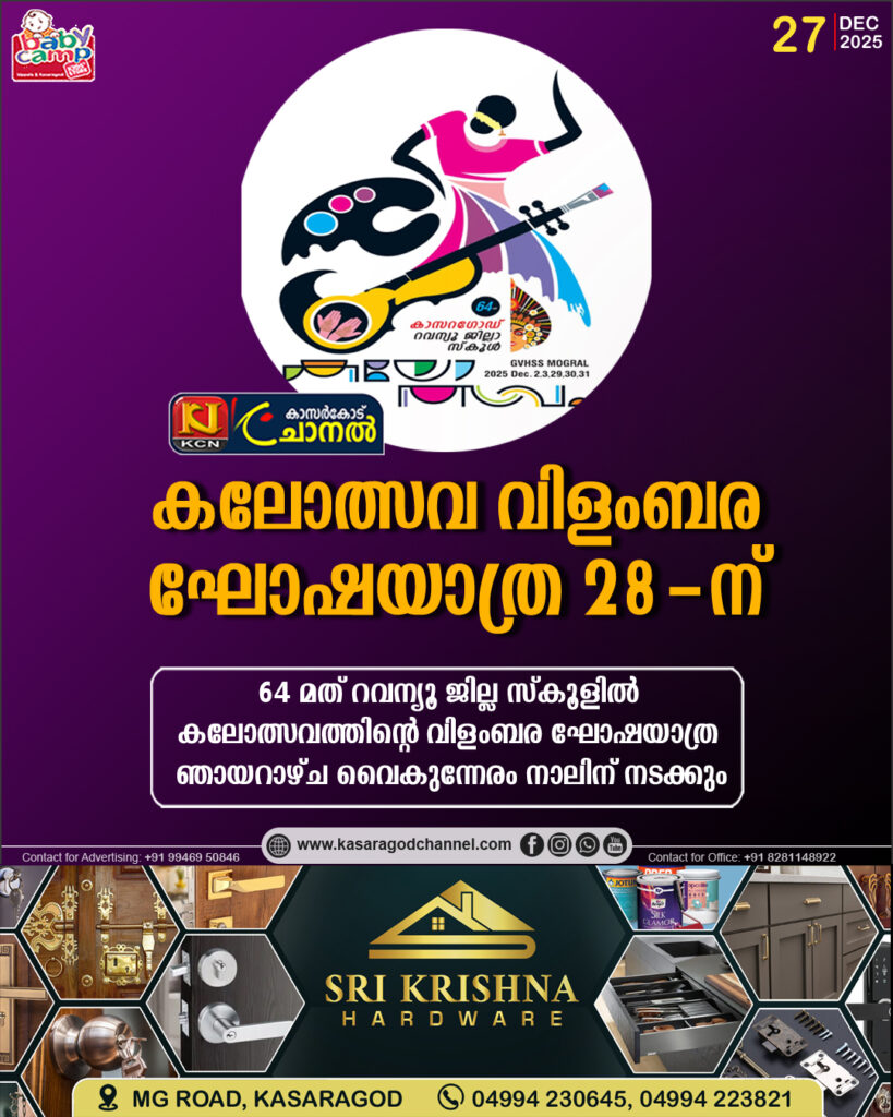 മൊഗ്രാല്: കാസര്ഗോഡ് റവന്യൂ ജില്ലാ കലോത്സവം ഹരിതമയമാക്കാന് ഗ്രീന് പ്രോട്ടോകോള് കമ്മിറ്റി രംഗത്ത്. കമ്മിറ്റിയുടെ നേതൃത്വത്തില് ഓലക്കൂട ,ഓല മെടയല് മത്സരം നടന്നു.ഗ്രീന് വളണ്ടിയര്സിനുള്ള ക്ലാസുകളുംസംഘടിപ്പിച്ചു.ശുചിത്വമിഷന് ജില്ലാ […]