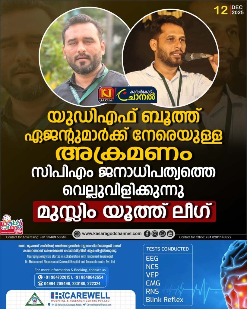 കാസര്ഗോഡ് : തൃക്കരിപ്പൂര് നിയോജകമണ്ഡലത്തിലെ വിവിധ ബൂത്തുകളില് യുഡിഎഫ് ഏജന്റ് മാര്ക്ക് നേരെ നടന്ന ആക്രമണം സിപിഎമ്മിന്റെ ജനാധിപത്യത്തോടുള്ള വെല്ലുവിളിയാണെന്ന് മുസ്ലിം യൂത്ത് ലീഗ് ജില്ലാ ആക്ടിംഗ്