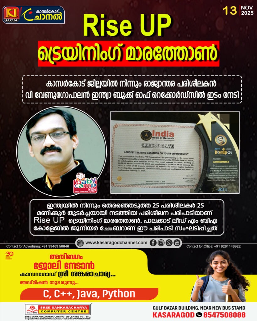 കാലിക്കടവ്: സമഗ്ര ശിക്ഷാ കാസര്കോട്, ജില്ലാപഞ്ചായത്ത് സംയുക്ത ആഭിമുഖ്യത്തില് പാര്ശ്വവല്ക്കരിക്കപ്പെട്ട വിഭാഗത്തിലെ കുട്ടികള്ക്കുള്ള പ്രത്യേക പിന്തുണ പദ്ധതിയായ പ്രദേശം ദത്തെടുക്കല് പിലിക്കോട് ഗ്രാമ പഞ്ചായത്തിലെ കുന്നും കിണറ്റുകര […]
