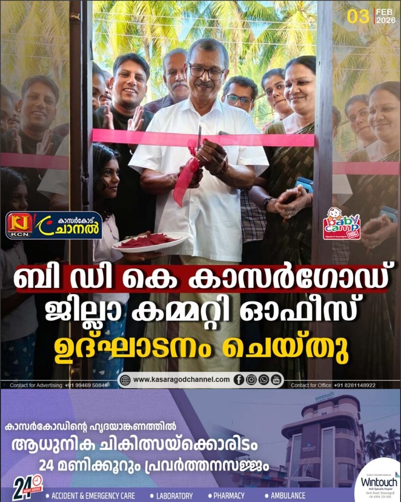 കാസര്ഗോഡ് : സന്നദ്ധ രക്തദാനരംഗത്തും ജീവകാരുണ്യ പ്രവര്ത്തന രംഗത്തും സജീവമായ ബ്ലഡ് ഡൊണേര്സ് കേരള (ബിഡികെ) പുതിയ ജില്ലാ കമ്മിറ്റി ഓഫീസ് ചെറുവത്തൂരില് ഉദ്ഘാടനം ചെയ്തു. വില്ലേജ്