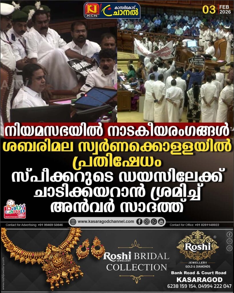 നിയമസഭയില് ഇന്നും പ്രതിപക്ഷ പ്രതിഷേധം. ശബരിമല സ്വര്ണക്കൊള്ള ഉന്നയിച്ചാണ് പ്രതിപക്ഷം പ്രതിഷേധിക്കുന്നത്. പ്ലക്കാര്ഡുകളുമായി സഭയുടെ നടുത്തളത്തില് ഇറങ്ങി നിന്നാണ് പ്രതിഷേധം നടത്തുന്നത്. സ്പീക്കര് എ എന് ഷംസീറിന്റെ