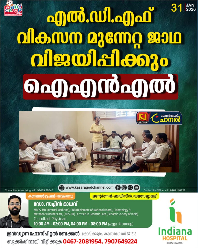 കാസര്കോട് ഇടതുപക്ഷസര്ക്കാറിന്റെ ജനക്ഷേമ പ്രവര്ത്തനം വികസനമുന്നേറ്റം കേരളത്തിന്റെവളര്ച്ച മുന് നിര്ത്തി സി.പി.എം സംസ്ഥാന സെക്രട്ടറി സ:എം.വിഗോവിന്ദന് മാസ്റ്റര്,നയിക്കുന്ന എല് ഡി എഫിന്റെ ആഭിമുഖ്യത്തില് നടക്കുന്ന മേഖല ജാഥ […]