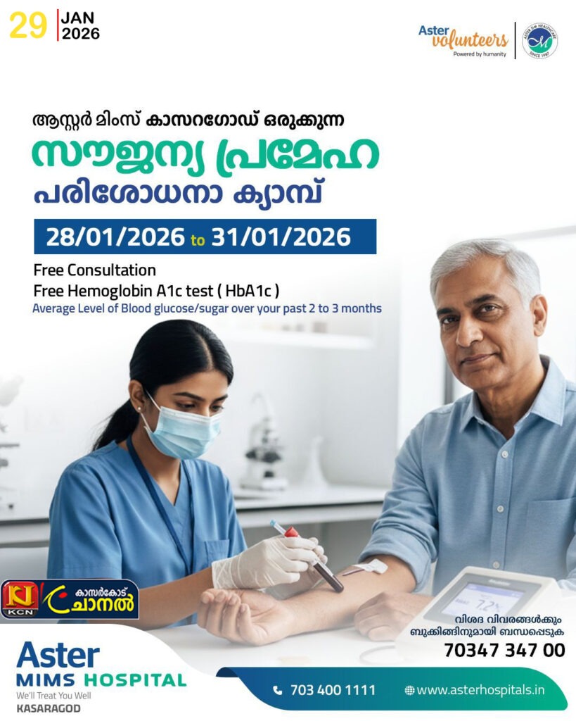 Free ConsultationFree Hemoglobin A 1 c test (HbA1c)Average Level of Blood glucose/sugar over your past 2 to 3 months വിശദവിവരങ്ങള്ക്കും