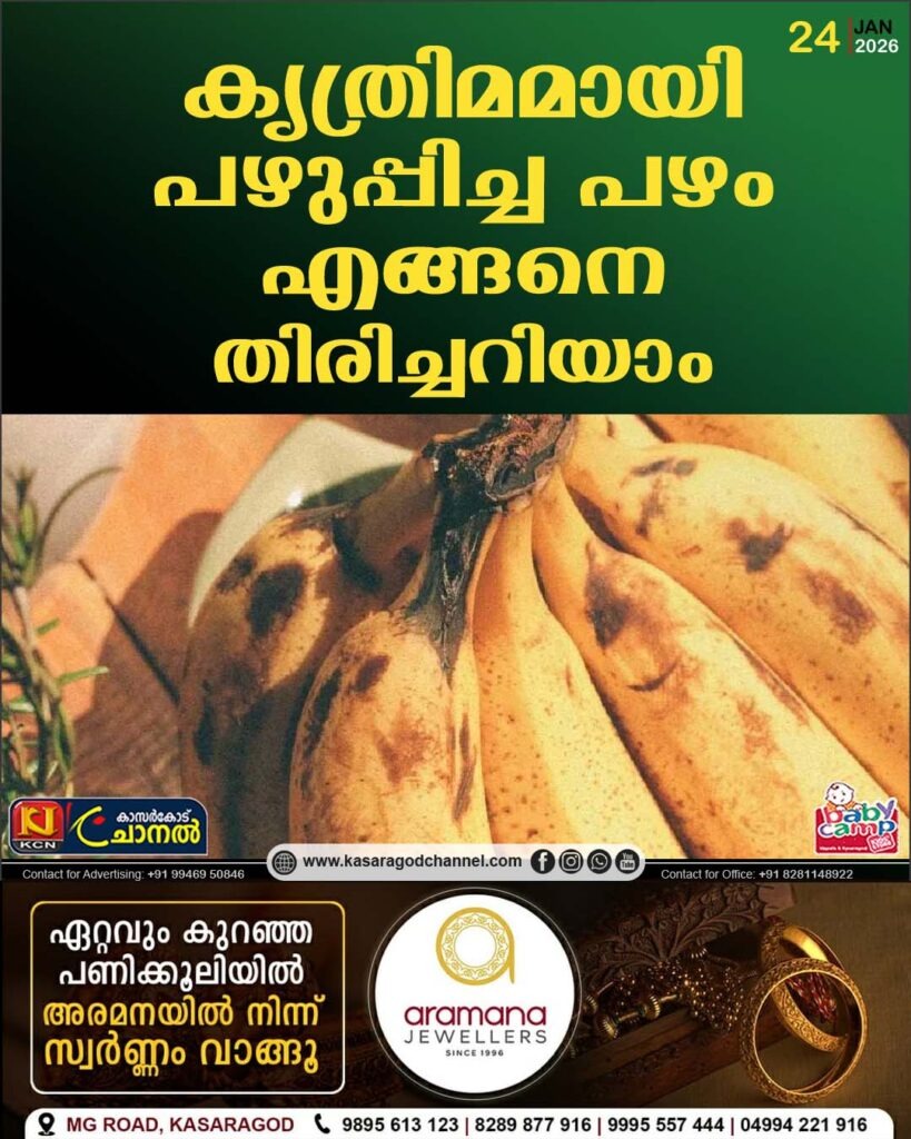കൃത്രിമമായി പഴുപ്പിച്ച പഴം എങ്ങനെ തിരിച്ചറിയാം കടകളില് നിന്ന് വാങ്ങുന്ന പഴം ആസ്വദിച്ച് കഴിക്കുമ്പോള് നിങ്ങള് ചിന്തിച്ചിട്ടുണ്ടോ ഇവ കൃത്രിമമായി പഴുപ്പിച്ചെടുത്തതാണോ അതോ സ്വാഭാവികമായി പഴുത്തതാണോ എന്ന്. […]