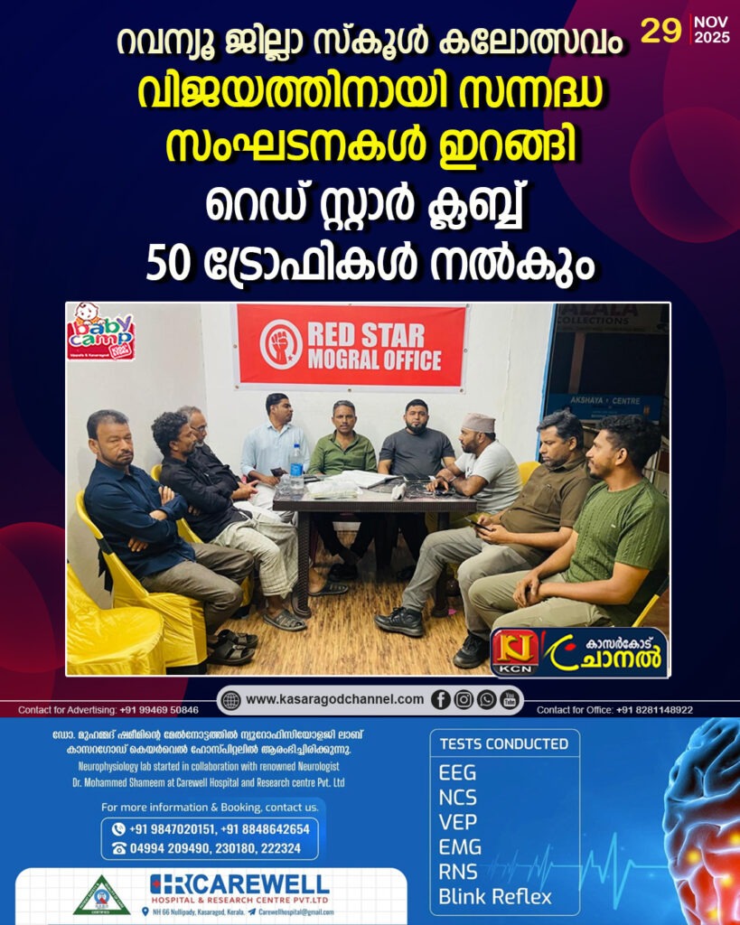 മൊഗ്രാല്. കാസര്ഗോഡ് ജില്ലാ സ്കൂള് കലോത്സവത്തിന്റെ ഭാഗമായുള്ള സ്റ്റേജിതര മത്സരങ്ങള് മറ്റന്നാള്( ഡിസംബര് 2,3 ചൊവ്വ,ബുധന് തീയതികളിലായി) മൊഗ്രാല് വൊക്കേ ഷണല് ഹയര് സെക്കന്ഡറി സ്കൂളില് നടക്കും.2026 […]