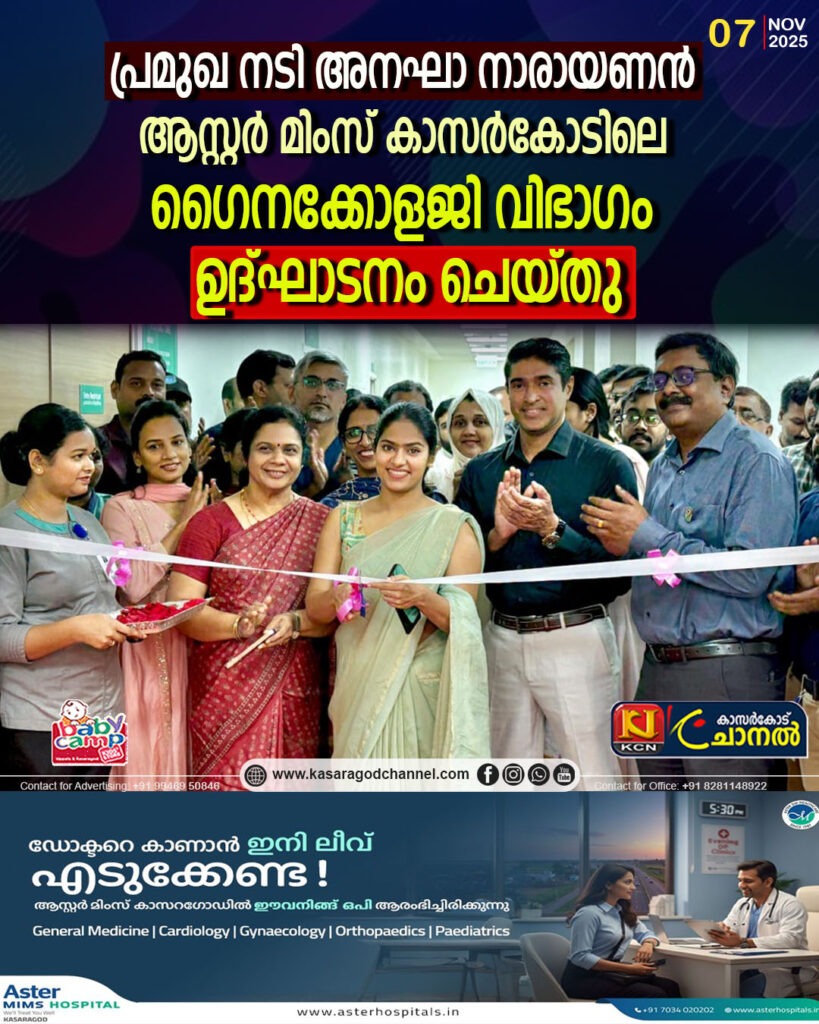 കാസര്കോട്: ആധുനിക സൗകര്യങ്ങളോടും ഉന്നത നിലവാരത്തിലുള്ള സ്ത്രീരോഗ സേവനങ്ങളോടും കൂടി ആസ്റ്റര് മിംസ് കാസര്കോടില് ഗൈനക്കോളജി വിഭാഗം പ്രവര്ത്തനം ആരംഭിച്ചു. വിഭാഗത്തിന്റെ ഉദ്ഘാടനം പ്രമുഖ ചലച്ചിത്രതാരമായ അനഘാ