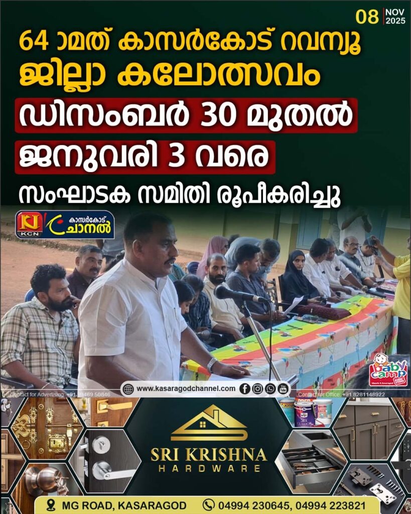 മൊഗ്രാല് 64ാമത്് കാസര്കോട് റവന്യൂ ജില്ലാ കലോത്സവം ഡിസം:30,31 ജനവരി 1,2,3 തിയതികളില് മൊഗ്രാല് വൊക്കേ ഷണല് ഹയര്സെക്കന്ഡറി സ്കൂളില് വച്ച് നടക്കും. പരിപാടിയുടെ വിജയത്തിന് വേണ്ടി