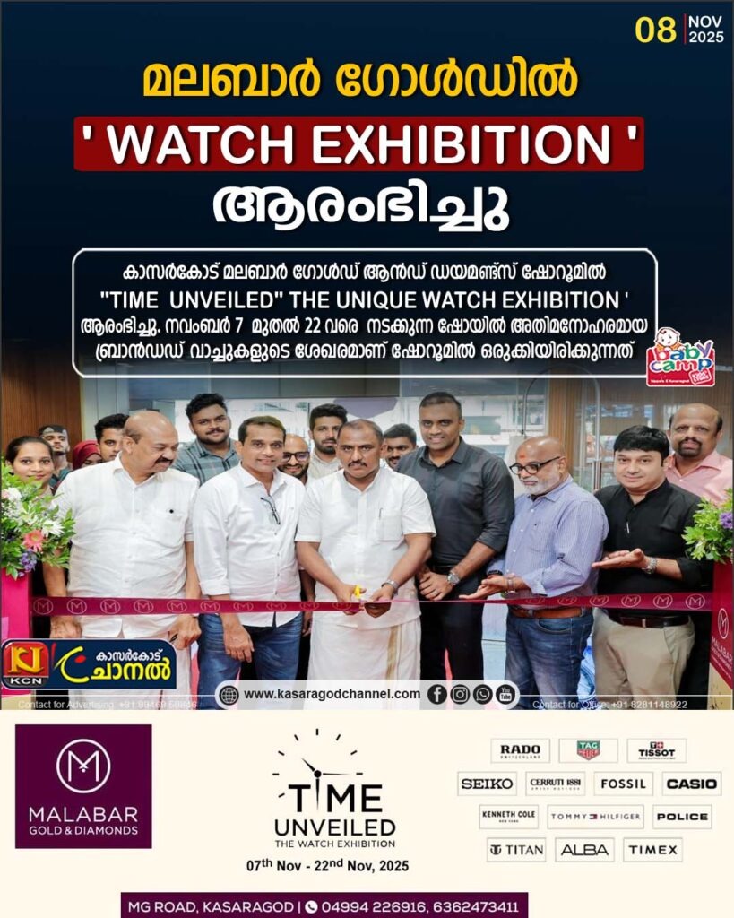 കാസര്ഗോഡ്: കാസര്ഗോഡ് മലബാര് ഗോള്ഡ് ആന്ഡ് ഡയമണ്ട്സ് ഷോറൂമില് ”TIME UNVEILED ‘ THE UNIQUE WATCH EXHIBITION ‘ആരംഭിച്ചു. നവംബര് 7 മുതല് 22 വരെ