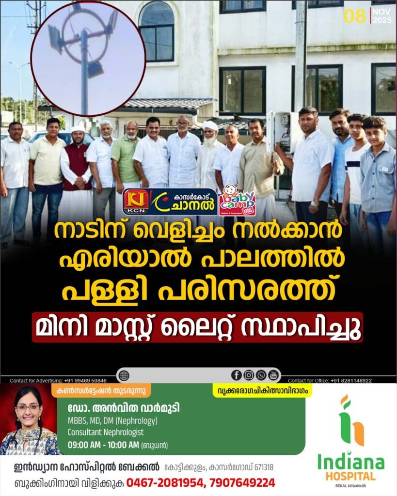 ഗ്രാമ പഞ്ചായത്ത് അംഗം റാഫി എരിയാല് സ്വിച്ച് ഓണ് കര്മ്മം നിര്വ്വഹിച്ചു എരിയാല് : മൊഗ്രാല്പുത്തൂര് ഗ്രാമ പഞ്ചായത്ത് 2025-26 വര്ഷത്തെ വാര്ഷിക പദ്ധതിയില് ഉള്പ്പെടുത്തി നാടിന്