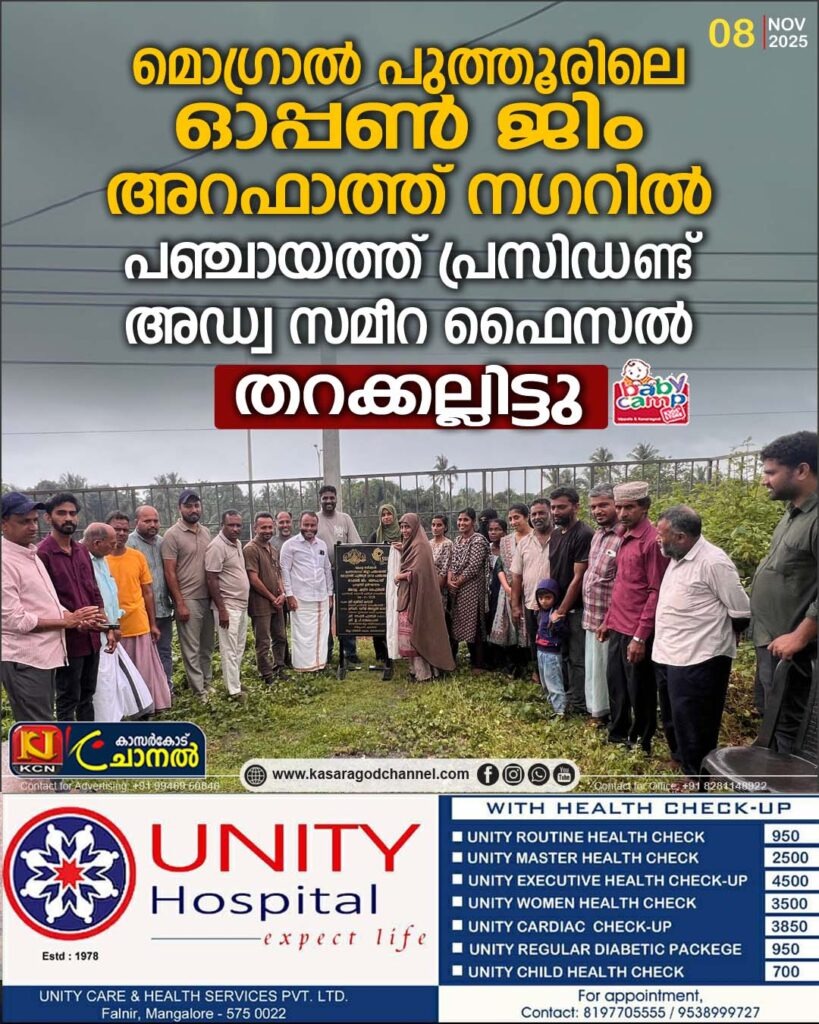 മൊഗ്രാല് പുത്തൂര് : ജില്ലാ പഞ്ചായത്തും മൊഗ്രാല് പുത്തൂര് ഗ്രാമ പഞ്ചായത്തും മൊഗ്രാല് പുത്തൂറില് നിര്മ്മിക്കുന്ന ഓപ്പണ് ജിം അറഫാത്ത് നഗറില് നിര്ക്കുന്നു.ഇതിന്റെ തറക്കല്ലിടല് കര്മ്മം പഞ്ചായത്ത്