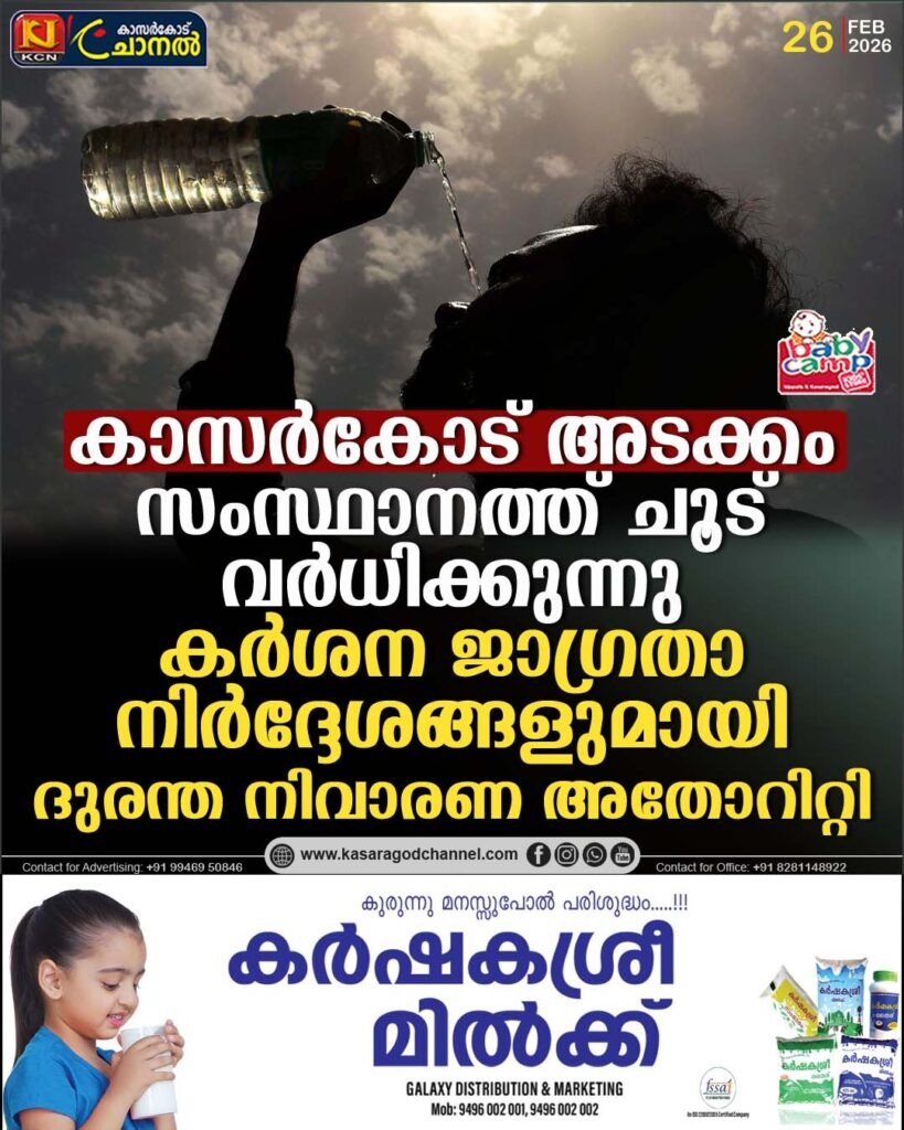 കാസര്കോട് അടക്കം സംസ്ഥാനത്ത് ചൂട് വര്ധിക്കുന്നു; കര്ശന ജാഗ്രതാ നിര്ദ്ദേശങ്ങളുമായി ദുരന്ത നിവാരണ അതോറിറ്റി