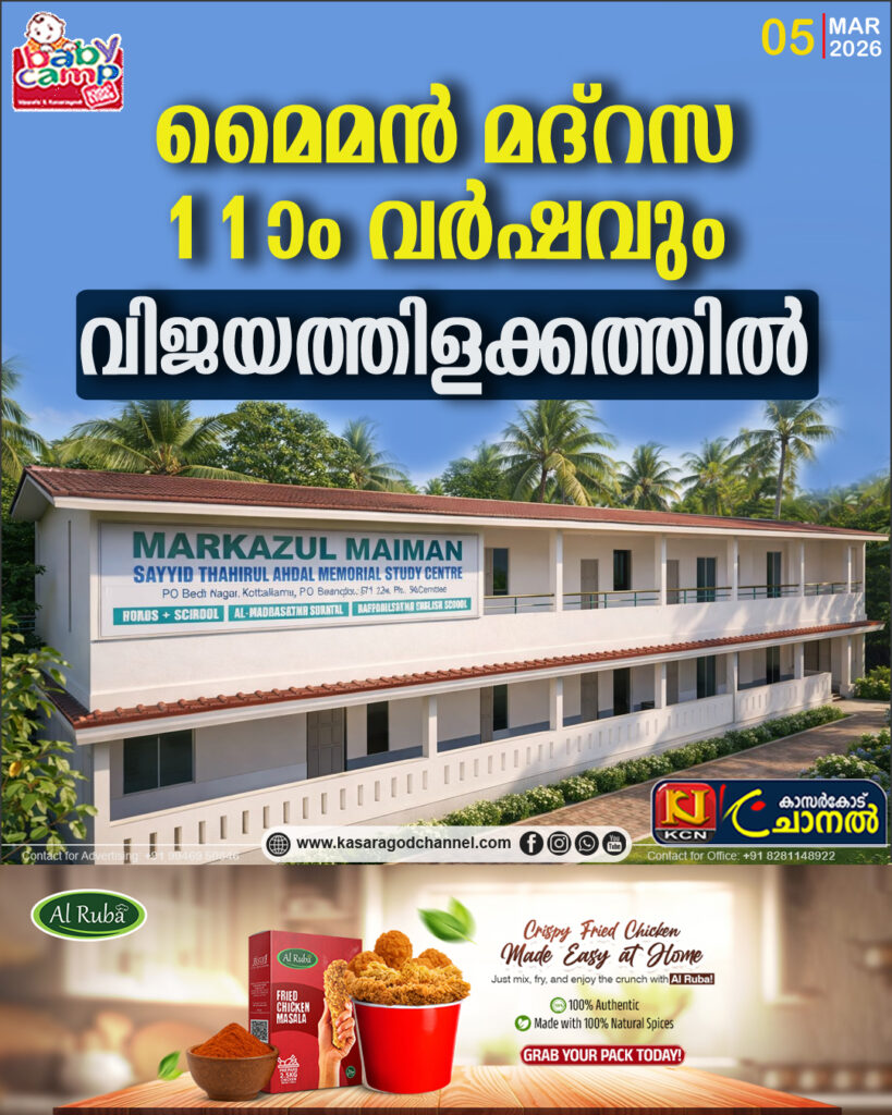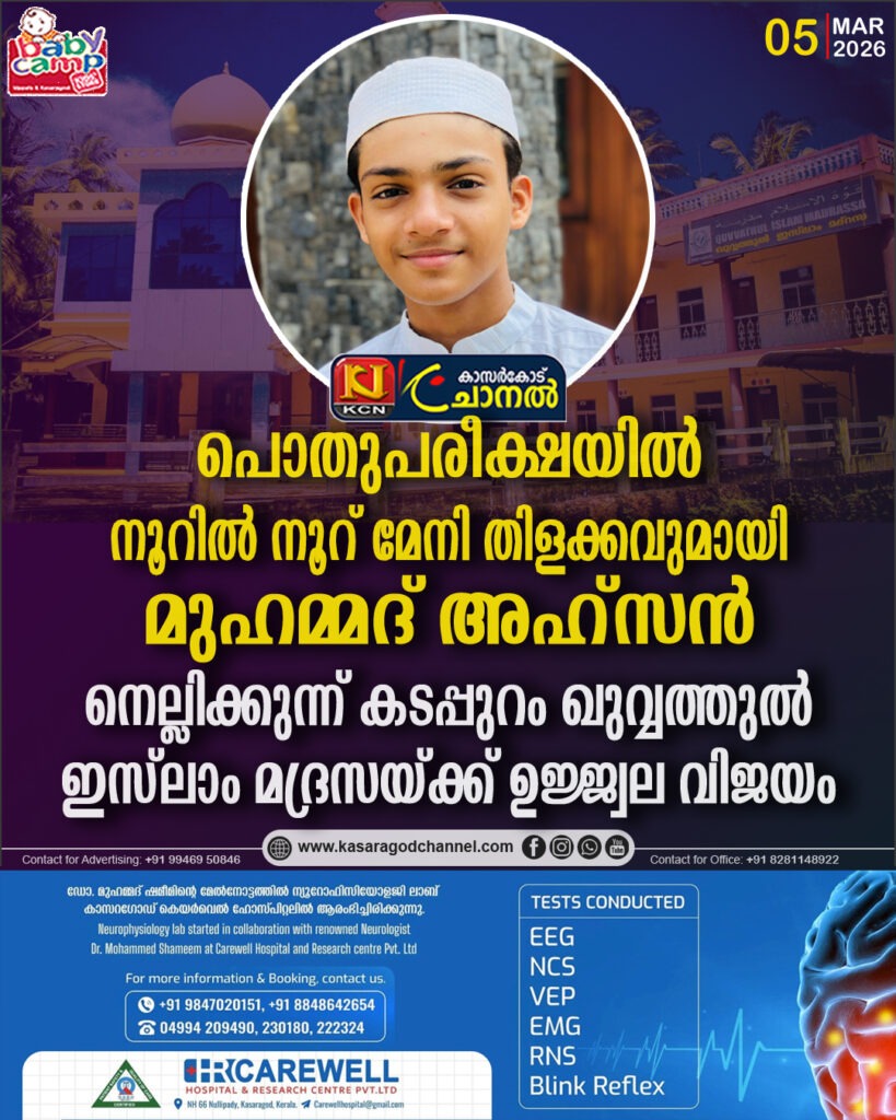 ?ആദൂര്: സമസ്ത കേരള ഇസ്ലാം മത വിദ്യാഭ്യാസ ബോര്ഡ് നടത്തിയ 2025-26 അധ്യയന വര്ഷത്തെ പൊതുപരീക്ഷയില് ഉജ്ജ്വല നേട്ടവുമായി ആദൂര് പള്ളം കന്സുല് ഉലൂം മദ്രസ. അഞ്ചാം […]