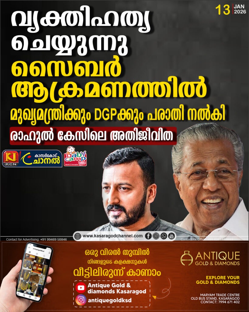 ‘തന്റെ വ്യക്തിവിവരങ്ങള് സാമൂഹ്യ മാധ്യമങ്ങളില് പ്രചരിപ്പിക്കുന്നതായാണ് പരാതിപാലക്കാട്: രാഹുല് മാങ്കൂട്ടത്തില് എംഎല്എയ്ക്കെതിരെ പരാതി നല്കിയ അതിജീവിതയ്ക്ക് എതിരെ വ്യാപക സൈബര് ആക്രമണം. സൈബര് ആക്രമണത്തില് നടപടി ആവശ്യപ്പെട്ട്