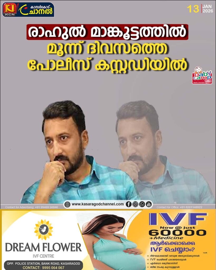 രാഹുല് മാങ്കൂട്ടത്തില് മൂന്ന് ദിവസത്തെ പോലീസ് കസ്റ്റഡിയില്