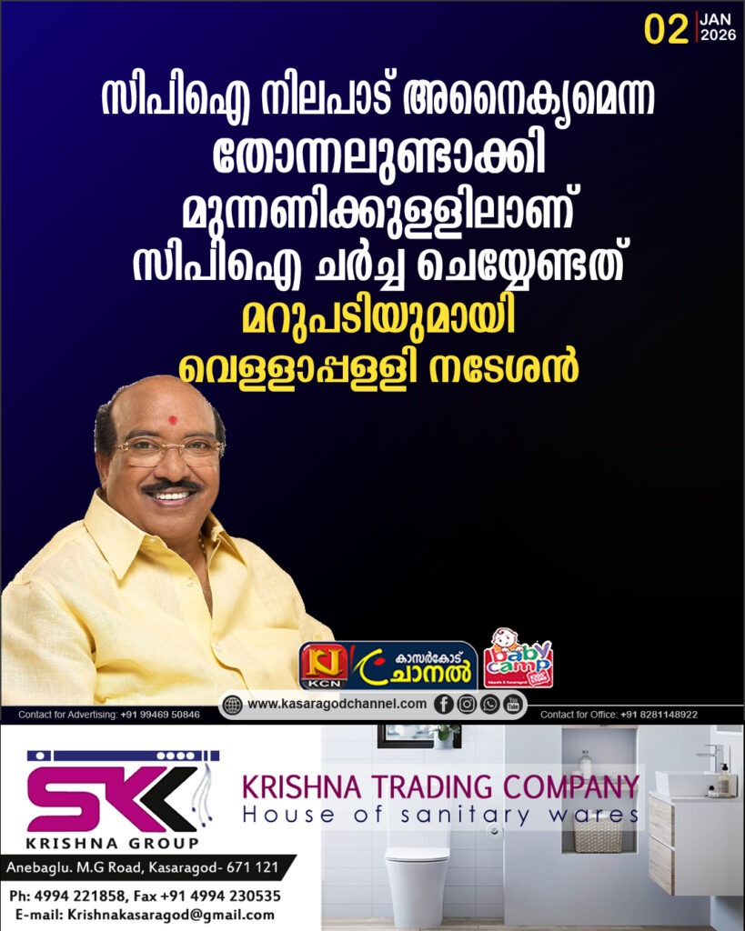 കാഞ്ഞങ്ങാട്ആരോഗ്യവകുപ്പില് നിന്നും വിരമിച്ച ജീവനക്കാര് ഇന്ത്യന് റെഡ് ക്രോസ് സൊസൈറ്റിയുമായി സഹകരിച്ച് പ്രവര്ത്തിക്കാന് പുതുവത്സരദിനത്തില് റെഡ് ക്രോസ് ഓഫീസില് സംഘടിപ്പിച്ച സ്നേഹ സദസ് തീരുമാനിച്ചു .റെഡ്ക്രോസ് സൊസെറ്റി […]