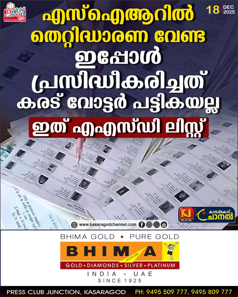 എസ്ഐആറില് തെറ്റിദ്ധാരണ വേണ്ട; ഇപ്പോള് പ്രസിദ്ധീകരിച്ചത് കരട് വോട്ടര് പട്ടികയല്ല; ഇത് എഎസ്ഡി ലിസ്റ്റ്