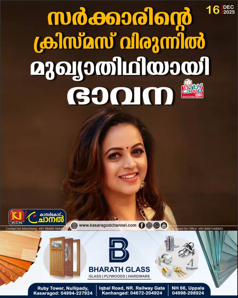 സര്ക്കാരിന്റെ ക്രിസ്മസ് വിരുന്നില് മുഖ്യാതിഥിയായി ഭാവന