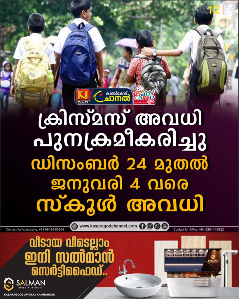 ക്രിസ്മസ് അവധി പുനക്രമീകരിച്ച് സര്ക്കാര്. സ്കൂള് അടയ്ക്കുന്നത് ഒരു ദിവസം നീട്ടി. ഡിസംബര് 24 മുതല് ജനുവരി 4 വരെയാണ് സ്കൂളുകള്ക്ക് അവധി പ്രഖ്യാപിച്ചിരിക്കുന്നത്. അര്ധവാര്ഷിക പരീക്ഷയ്ക്ക്