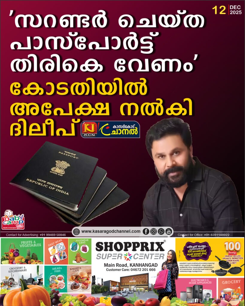 എറണാകുളം പ്രിന്സിപ്പല് സെഷന്സ് കോടതിയിലുള്ള തന്റെ പാസ്പോര്ട്ട് ആവശ്യപ്പെട്ട് നടന് ദിലീപ്. ജാമ്യ വ്യവസ്ഥയുടെ ഭാഗമായാണ് പാസ്പോര്ട്ട് സറണ്ടര് ചെയ്തിരുന്നത്. ഇത് ആവശ്യപ്പെട്ടാണ് ദിലീപ് അപേക്ഷ നല്കിയത്.