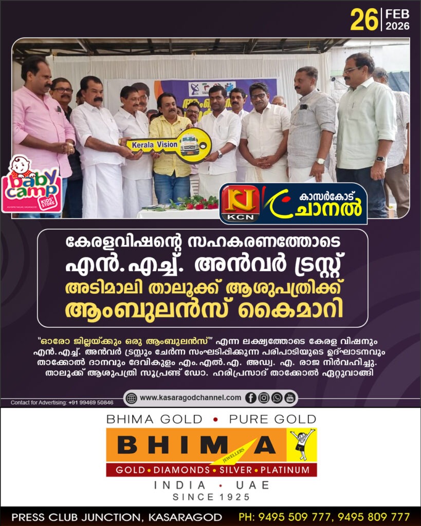 അടിമാലി: ”ഓരോ ജില്ലയ്ക്കും ഒരു ആംബുലന്സ്” എന്ന ലക്ഷ്യവുമായി കേരള വിഷനും എന്.എച്ച്. അന്വര് ട്രസ്റ്റും സംയുക്തമായി നടത്തുന്ന സാമൂഹ്യസേവന പദ്ധതിയുടെ ഭാഗമായി ഇടുക്കി ജില്ലയിലെ അടിമാലി