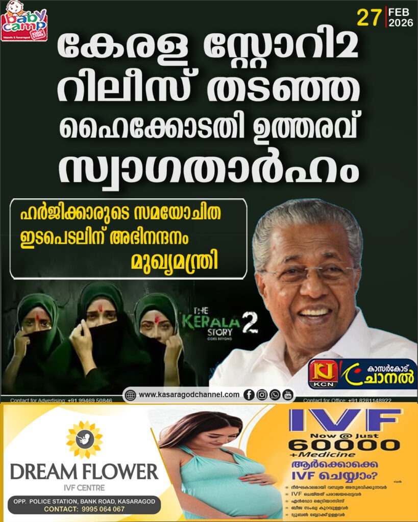കേരളം തീവ്രവാദികളുടെ നാടാണെന്ന് വരുത്തിത്തീര്ക്കാന് ബോധപൂര്വ്വമായ ശ്രമങ്ങള് നടക്കുന്ന ഈ കാലത്ത്, വിവേകബുദ്ധിയോടെ സത്യം ഉയര്ത്തിപ്പിടിക്കാന് ഓരോ വ്യക്തിയും ബാധ്യസ്ഥനാണെന്ന് മുഖ്യമന്ത്രികേരള സ്റ്റോറി2 റിലീസ് തടഞ്ഞ ഹൈക്കോടതി