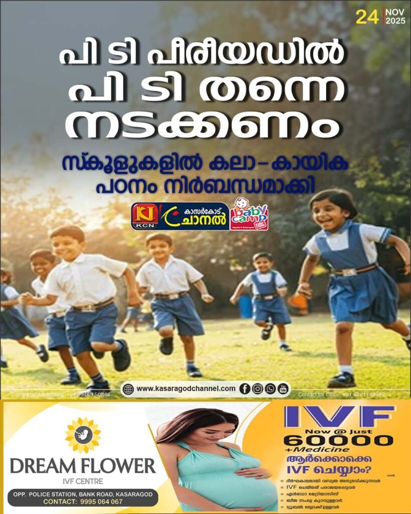 ‘പി ടി പീരീയഡില് പി ടി തന്നെ നടക്കണം’; സ്കൂളുകളില് കലാ-കായിക പഠനം നിര്ബന്ധമാക്കി