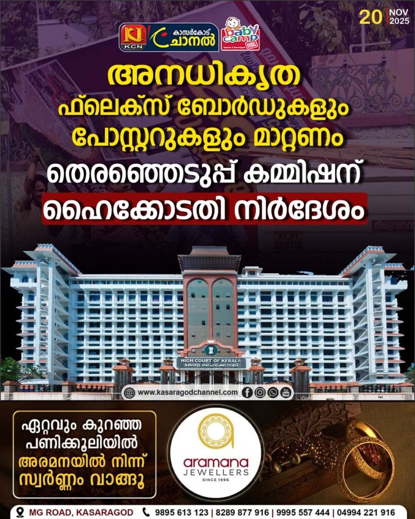 അനധികൃത ഫ്ലെക്സ് ബോര്ഡുകളും പോസ്റ്ററുകളും മാറ്റണം; തെരഞ്ഞെടുപ്പ് കമ്മിഷന് ഹൈക്കോടതി നിര്ദേശം