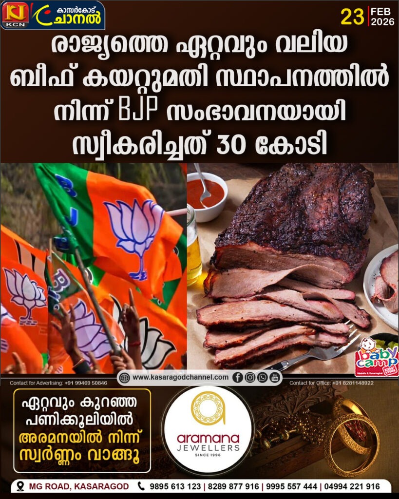 രാജ്യത്തെ ഏറ്റവും വലിയ ബീഫ് കയറ്റുമതി സ്ഥാപനത്തില്‍ നിന്ന് BJP സംഭാവനയായി സ്വീകരിച്ചത് 30 കോടി; റിപ്പോര്‍ട്ട് ന്യൂഡല്‍ഹി: രാജ്യത്തെ ഏറ്റവും വലിയ ബീഫ് കയറ്റുമതി സ്ഥാപനമായ