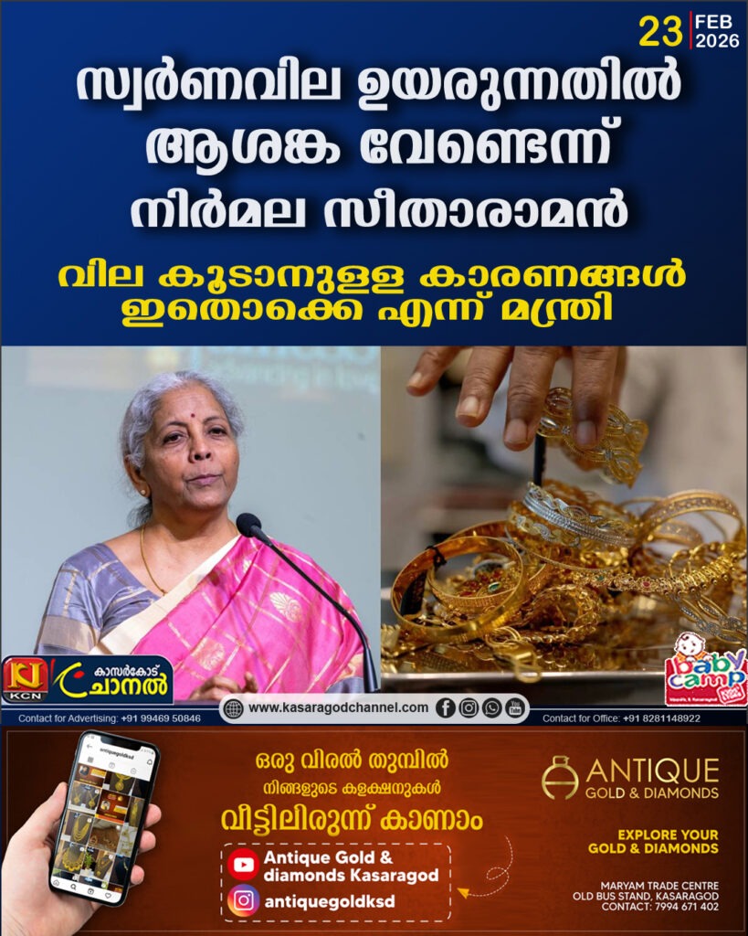 സ്വര്‍ണവില ഉയരുന്നതില്‍ ആശങ്ക വേണ്ടെന്ന് നിര്‍മല സീതാരാമന്‍; വില കൂടാനുള്ള കാരണങ്ങള്‍ ഇതൊക്കെ എന്ന് മന്ത്രി