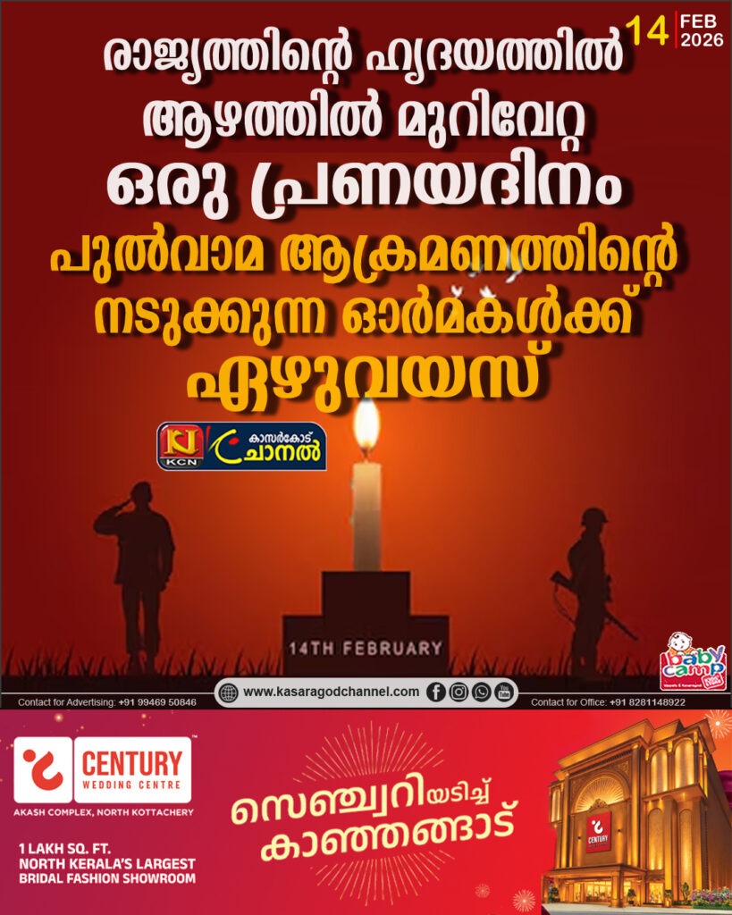 കശ്മീരിലെ പുല്‍വാമ ഭീകരാക്രമണം നടന്നിട്ട് ഇന്നേയ്ക്ക് ഏഴു വര്‍ഷം. മലയാളി സൈനികന്‍ വി വി വസന്തകുമാര്‍ ഉള്‍പ്പെടെ നാല്‍പത് സിആര്‍പിഎഫ് സൈനികരുടെ ജീവനെടുത്ത ചാവേര്‍ സ്‌ഫോടനം ഇന്നും
