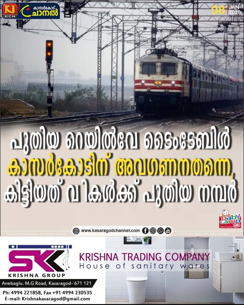 പുതിയ റെയില്വേ ടൈംടേബിള്; കാസര്കോടിന് അവഗണനതന്നെ, കിട്ടിയത് വണ്ടികള്ക്ക് പുതിയ നമ്പര്