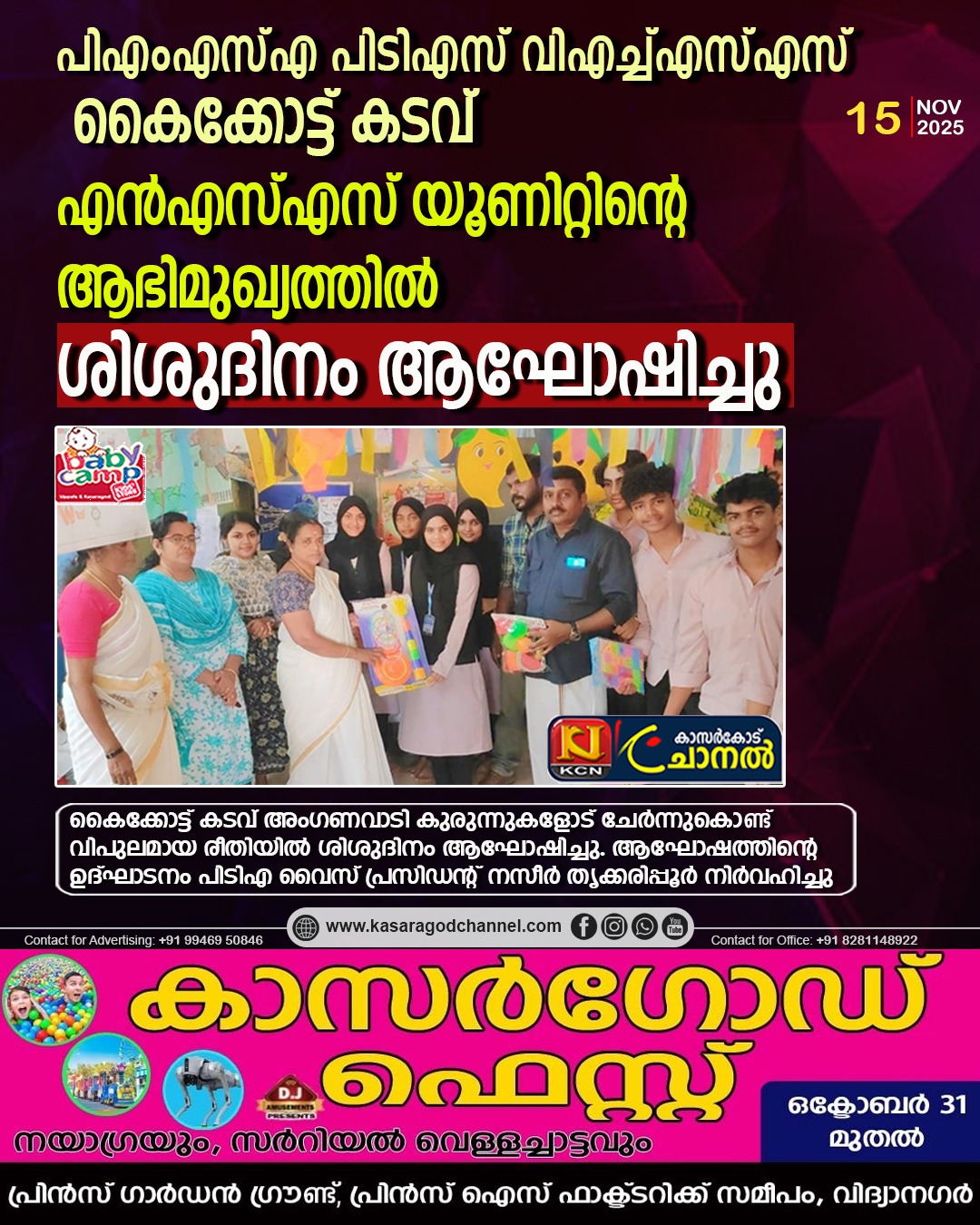 പിഎംഎസ്എ പി ടി എസ് വിഎച്ച്എസ്എസ് കൈക്കോട്ട് കടവ് എന്എസ്എസ് യൂണിറ്റിന്റെ ആഭിമുഖ്യത്തില് ശിശുദിനം ആഘോഷിച്ചു