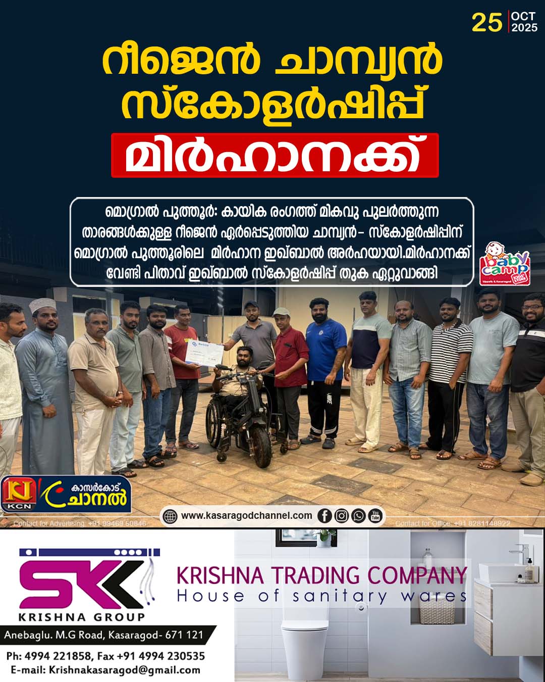 മൊഗ്രാല് പുത്തൂര്: കായിക രംഗത്ത് മികവു പുലര്ത്തുന്ന താരങ്ങള്ക്കുള്ള റീജെന് ഏര്പ്പെടുത്തിയ ചാമ്പ്യന്- സ്കോളര്ഷിപ്പിന് മൊഗ്രാല് പുത്തൂരിലെ മിര്ഹാന ഇഖ്ബാല് അര്ഹയായി.