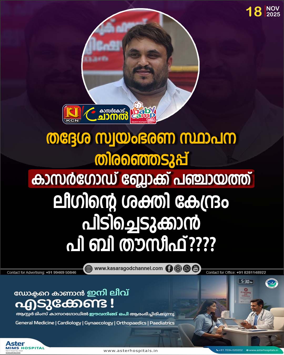 തദ്ദേശ സ്വയംഭരണ സ്ഥാപന തിരഞ്ഞെടുപ്പ്;കാസര്ഗോഡ് ബ്ലോക്ക് പഞ്ചായത്ത്;ലീഗിന്റെ ശക്തി കേന്ദ്രം പിടിച്ചെടുക്കാന് പി ബി തൗസീഫ്????