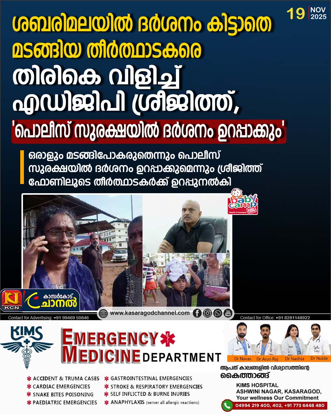 ശബരിമലയില് ദര്ശനം കിട്ടാതെ മടങ്ങിയ പാരിപ്പള്ളിയില് നിന്നുള്ള തീര്ത്ഥാടകരെ ഫോണില് തിരികെ വിളിച്ച് ശബരിമലയിലെ പൊലീസ് കോഓര്ഡിനേറ്റര് എഡിജിപി എസ് ശ്രീജിത്ത്.