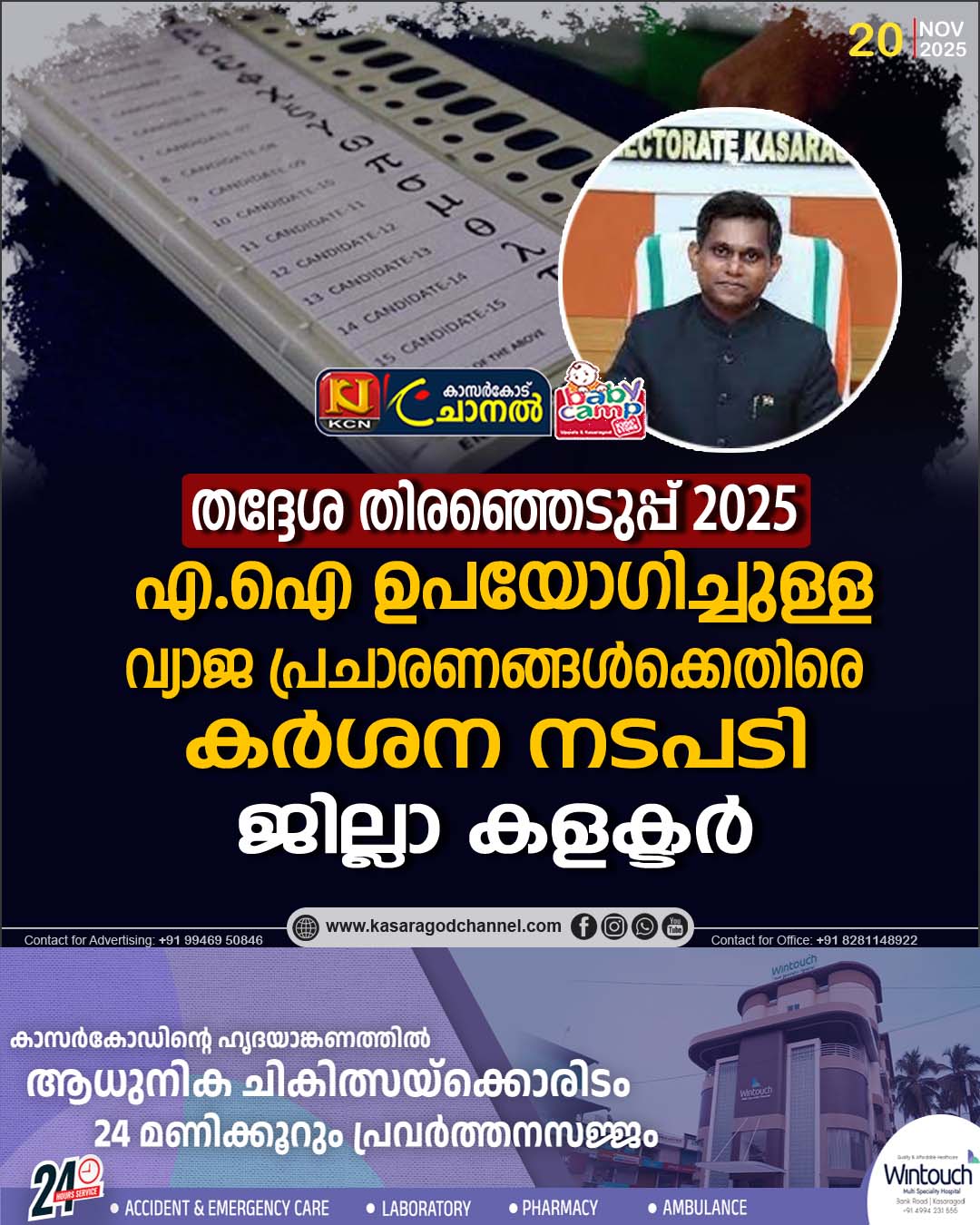 തദ്ദേശസ്ഥാപനങ്ങളിലേക്കുള്ള തിരഞ്ഞെടുപ്പില് ആര്ട്ടിഫിഷ്യല് ഇന്റലിജന്സ് (എഐ) ഉപയോഗിച്ചുള്ള വ്യാജ പ്രചാരണങ്ങള്ക്കെതിരെ കര്ശന നടപടിഎടുക്കുമെന്ന് ജില്ലാ തെരഞ്ഞെടുപ്പ് ഓഫീസര് കൂടിയായ ജില്ലാ കളക്ടര് കെ. ഇമ്പശേഖര് പറഞ്ഞു.