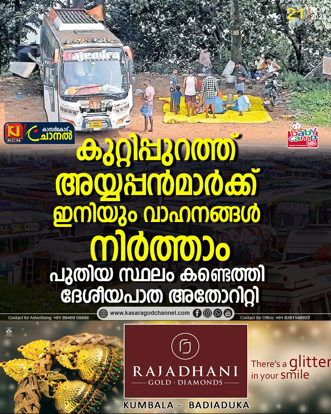 കുറ്റിപ്പുറം : ശബരിമല തീര്ത്ഥടകരുടെ വാഹനങ്ങള് നിര്ത്തിയിടാന് കുറ്റിപ്പുറത്ത് ദേശീയപാത അതോറിറ്റി സൗകര്യമൊരുക്കുന്നു. കുറ്റിപ്പുറം ഹീല് ഫോര്ട്ട് ഹോസ്പിറ്റലിന് എതിര്വശത്തായി ദേശീയപാതയിലെ നിരീക്ഷണ ക്യാമറ ഓപ്പറേറ്റിങ് സെന്ററിന്റെ ഇരുഭാഗത്തുമായി ഒഴിഞ്ഞു കിടക്കുന്ന സ്ഥലമാണ് അയ്യപ്പന്മാരുടെ വാഹനങ്ങള് നിര്ത്തിയിടാന് ഉപയോഗിക്കുക.