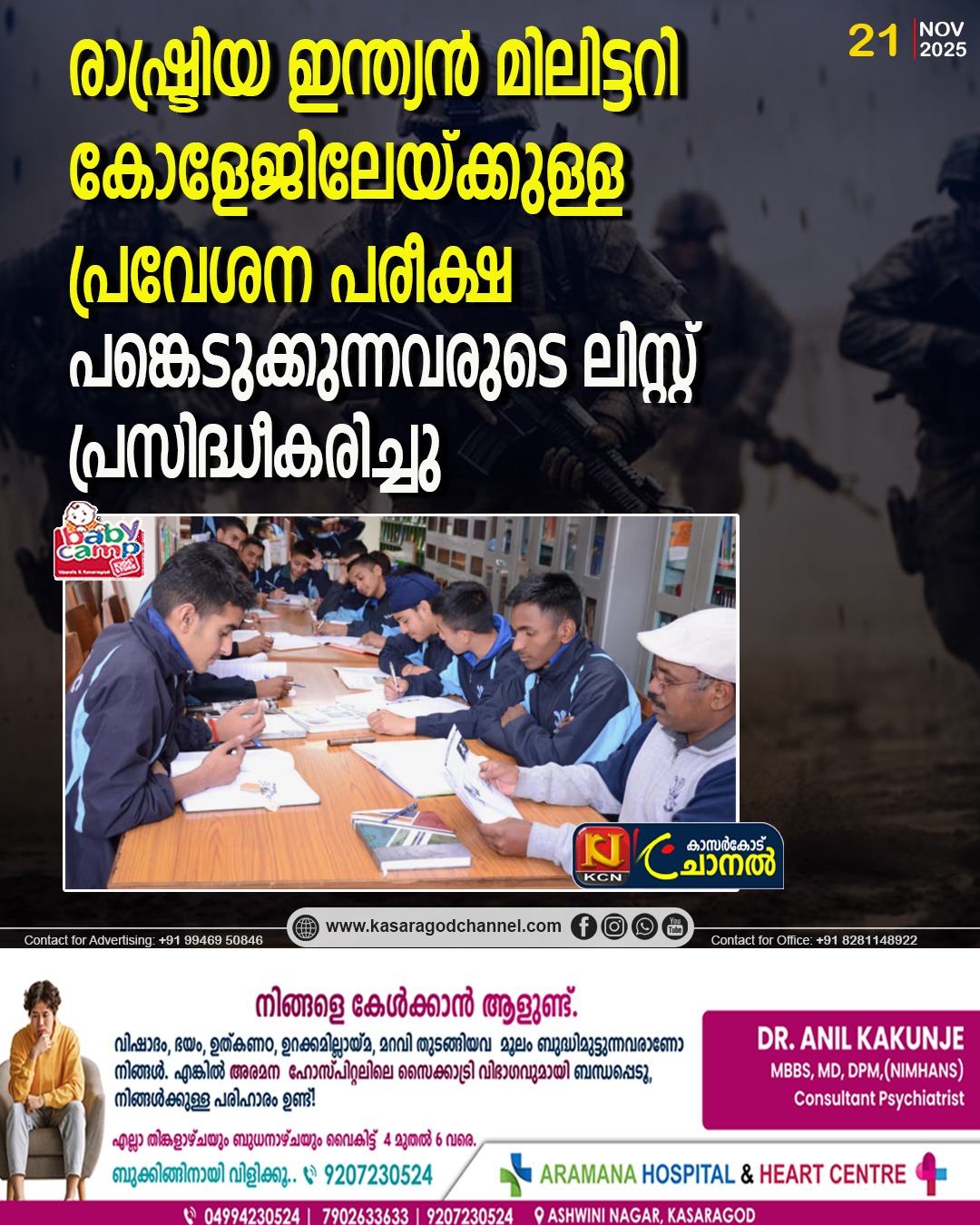 തിരുവനന്തപുരം: 2025 ഡിസംബര് 7ന് പരീക്ഷാ ഭവനില് വെച്ച് നടക്കുന്ന രാഷ്ട്രിയ ഇന്ത്യന് മിലിട്ടറി കോളേജ്, ഡെറാഡൂണിലേക്കുള്ള പ്രവേശന പരീക്ഷയില് പങ്കെടുക്കുന്നവരുടെ ലിസ്റ്റ്, സമയവിവര പട്ടിക എന്നിവ പരീക്ഷാ ഭവന്റെ ഒദ്യോഗിക വെബ്സൈറ്റില് (https://pareekshabhavan.kerala.gov.in) ല് പ്രസിദ്ധീകരിച്ചു. ലിസ്റ്റില് ഉള്പ്പെട്ട വിദ്യാര്ത്ഥികളില് ആര്ക്കെങ്കിലും അഡ്മിഷന് ടിക്കറ്റ് ലഭിച്ചിട്ടില്ലെങ്കില് തിരിച്ചറിയല് രേഖയുമായി വന്ന് ഡ്യൂപ്ലിക്കേറ്റ് അഡ്മിഷന് ടിക്കറ്റ് കൈപ്പറ്റേണ്ടതാണെന്ന് അധികൃതര് അറിയിച്ചു.